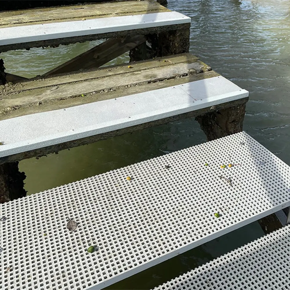 Ce caillebotis en PRFV (Polyester Renforcé de Fibres de Verre) a été conçu pour répondre aux exigences d’accessibilité des Personnes à Mobilité Réduite (PMR).